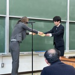 松谷奏さんが令和7年度広島大学大学院先進理工系科学研究科物理学プログラム修士論文発表優秀賞を受賞しました。松谷さんは物理プログラム学位記授与式にてプログラム長より表彰を受けました。